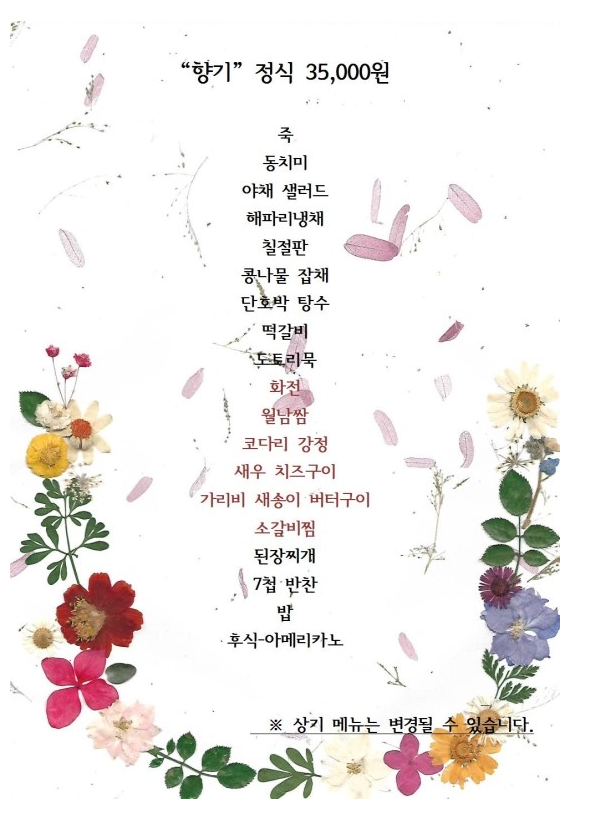 우리는 향기정식을 주문하였습니다. 음식 사진은 찍지 못하였습니다.