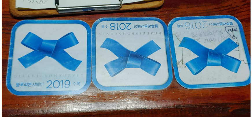 카운터에는 블루리본서베이에 수록된 사실을 자랑하고 있습니다.